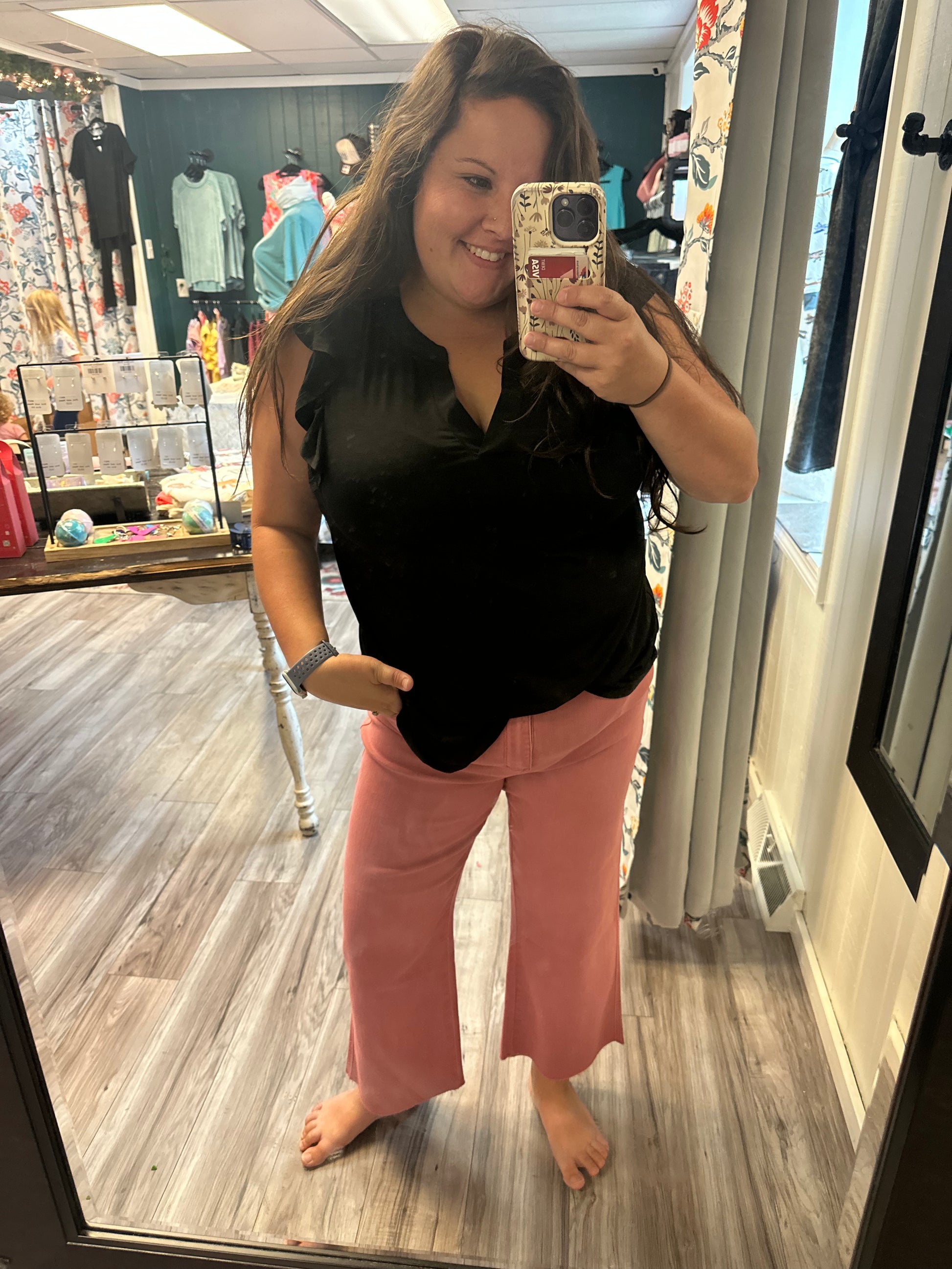 Spark joy in your wardrobe with our Black Flutter Tank! This flowy, flattering tank is a must-have with its oversized fit (size down for a more structured look) and lightweight, breathable fabric. Perfect for any occasion, this tank will keep you feeling comfortable and looking fabulous.