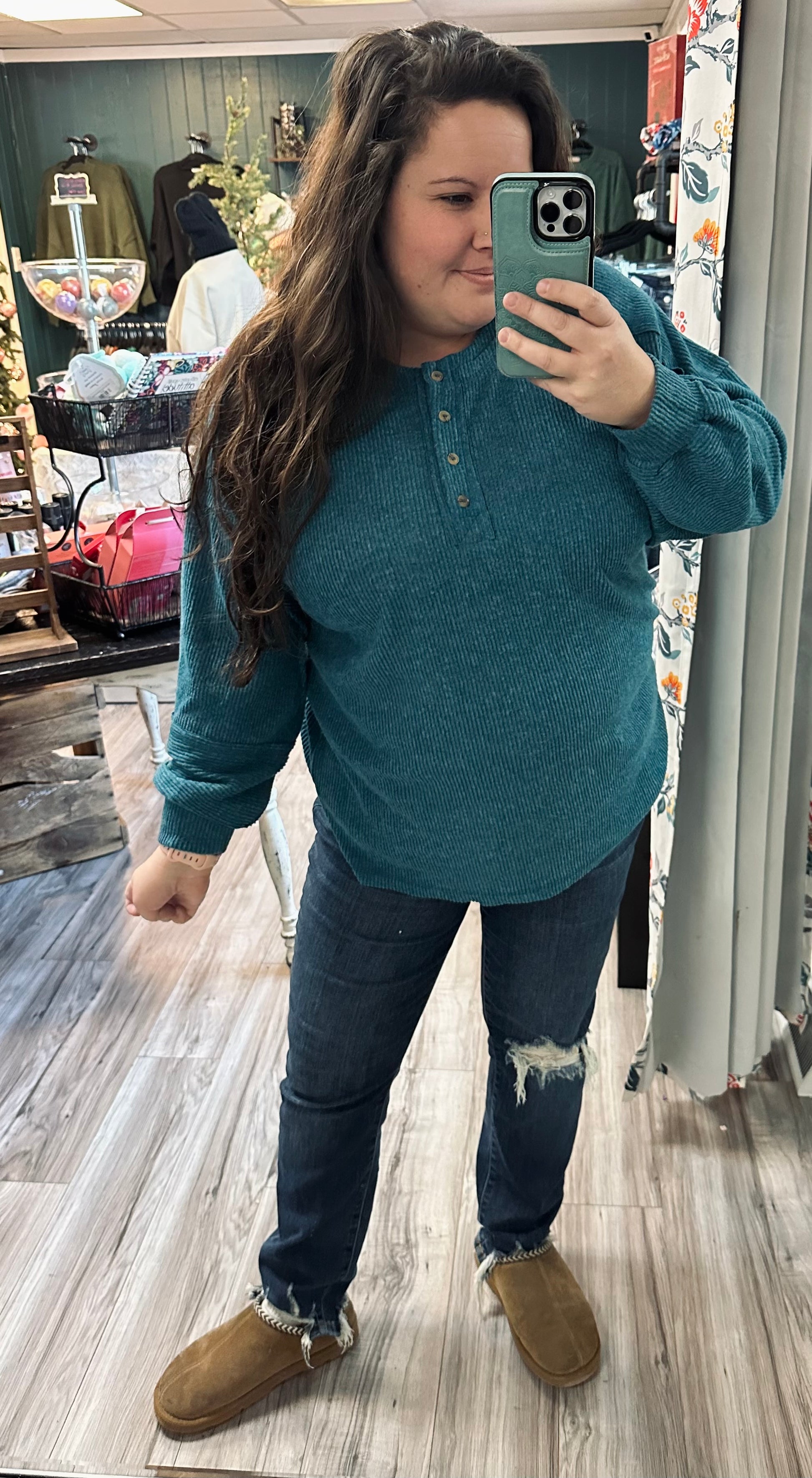 Brushed hacci henley button sweater
