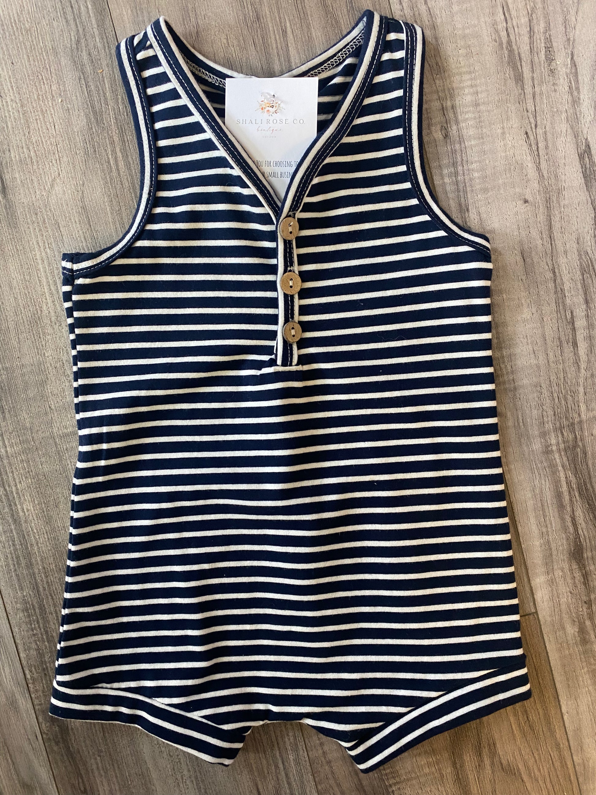 Navy faux button romper